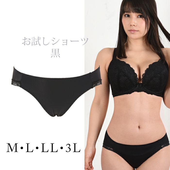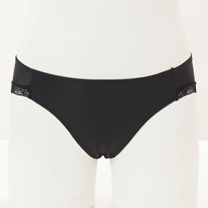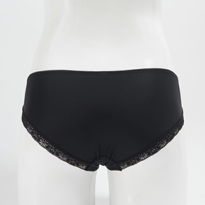 定番のノーマルショーツ。 伸縮性の高い素材で履きやすく、シンプルな無地ブラックなので普段使いに便利です。 アウターに響きにくいように後足口には細幅レースを使用しています。