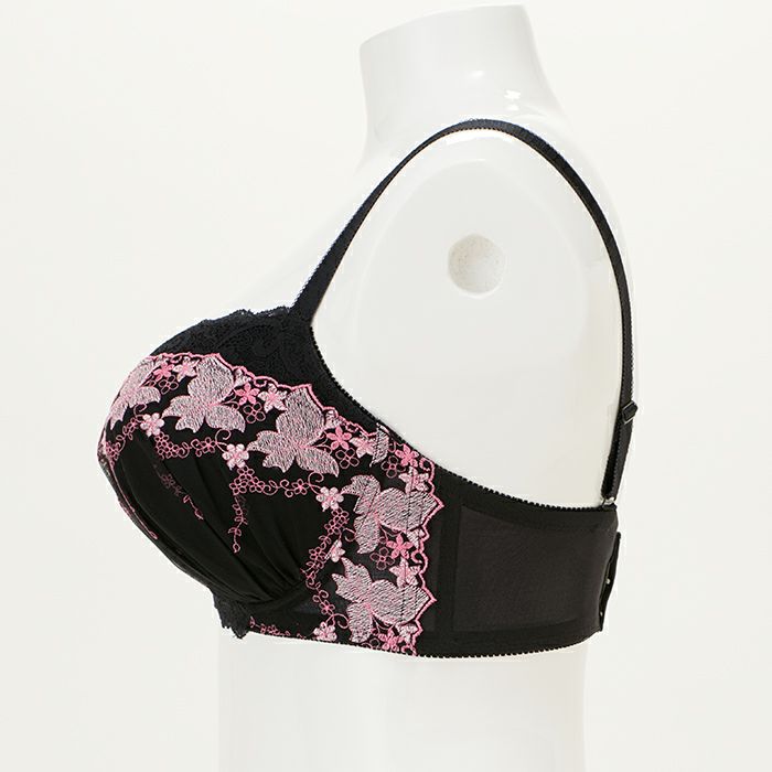 肉質が柔らかいので、自然にすっぽりと胸が収まります。これでストラップがピンクだと甘すぎですが、全体的に凹凸も少なく他の部分がブラックでシンプルなので、大人可愛いです。