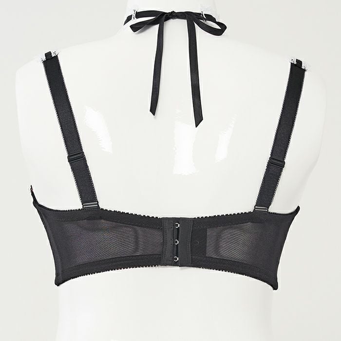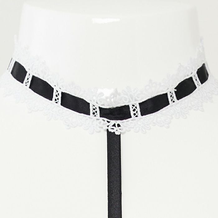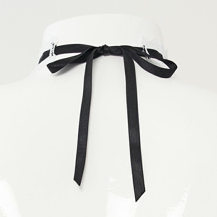 首元を彩るチョーカーは、前中心のZカンで取り外し可能です。