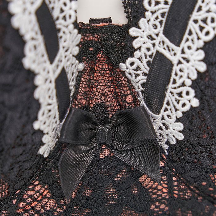 首元を彩るチョーカーは、前中心のZカンで取り外し可能です。