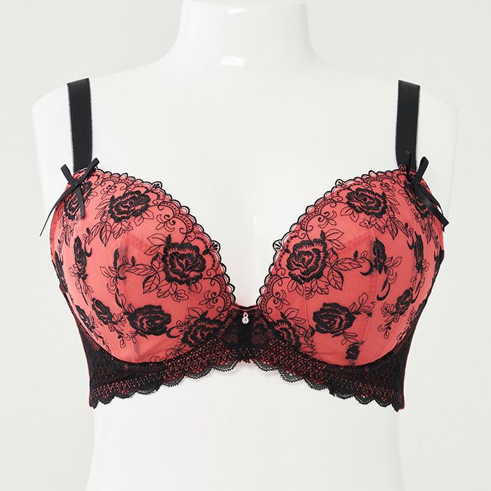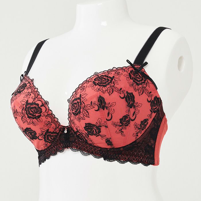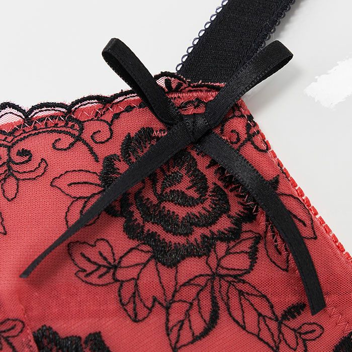 黒薔薇の刺繍がセクシーな印象のレッドランジェリー。