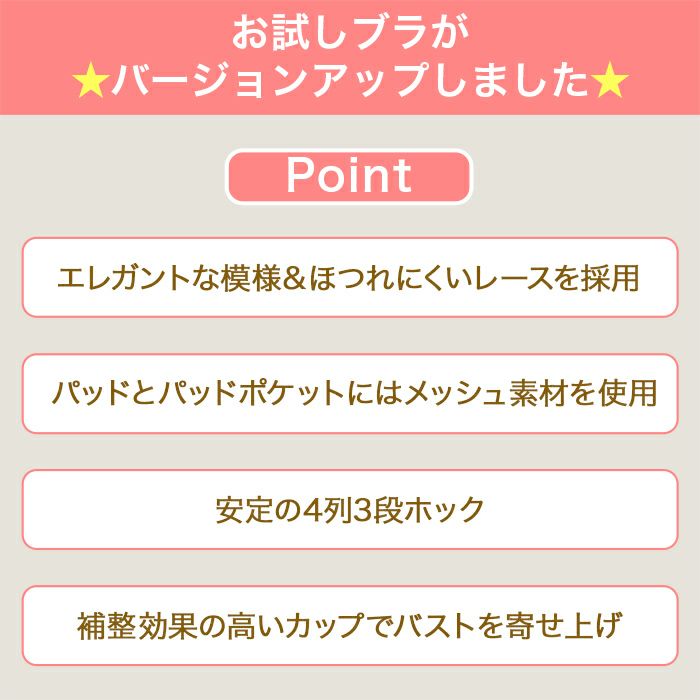 【NEW】お試しブラ ベージュ 3/4カップ・丸胸(SP540) レース 3/4カップ・丸胸 白・ベージュ・クリーム・黄色系 定価 ¥ 3,850 ¥ 3,850 税込 販売期間 2025/03/28 17:00 〜 詳細を見る お気に入りに登録する