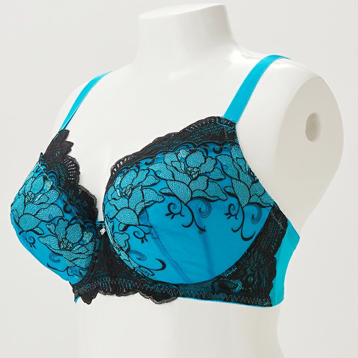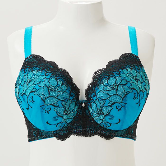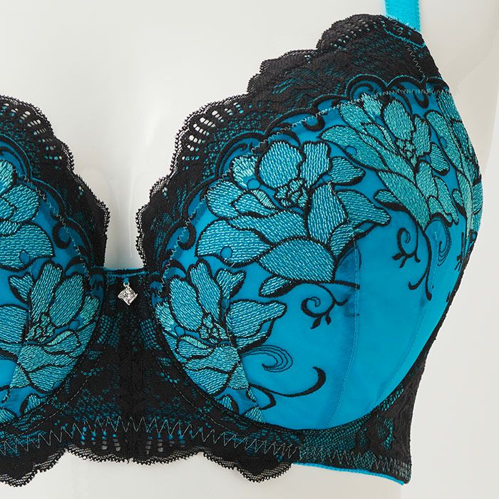 深みのあるターコイズブルーとブラックの組み合わせがおしゃれ度の高いランジェリー。