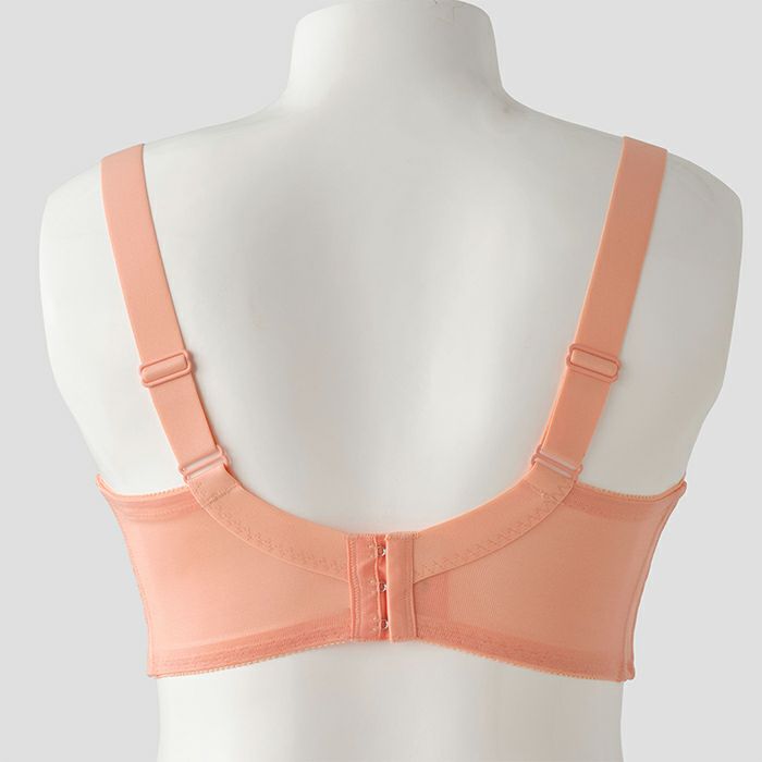 やさしいサーモンピンクが肌なじみ良く、スイートな印象のランジェリー。