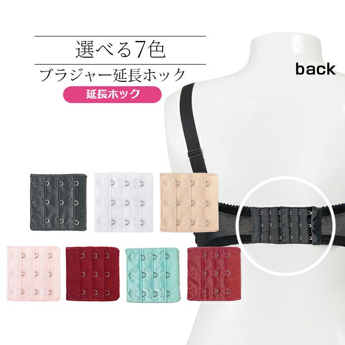 ブラジャーの後ろホックに引っ掛けるだけで、簡単にアンダーサイズを拡張できる「延長ホック」