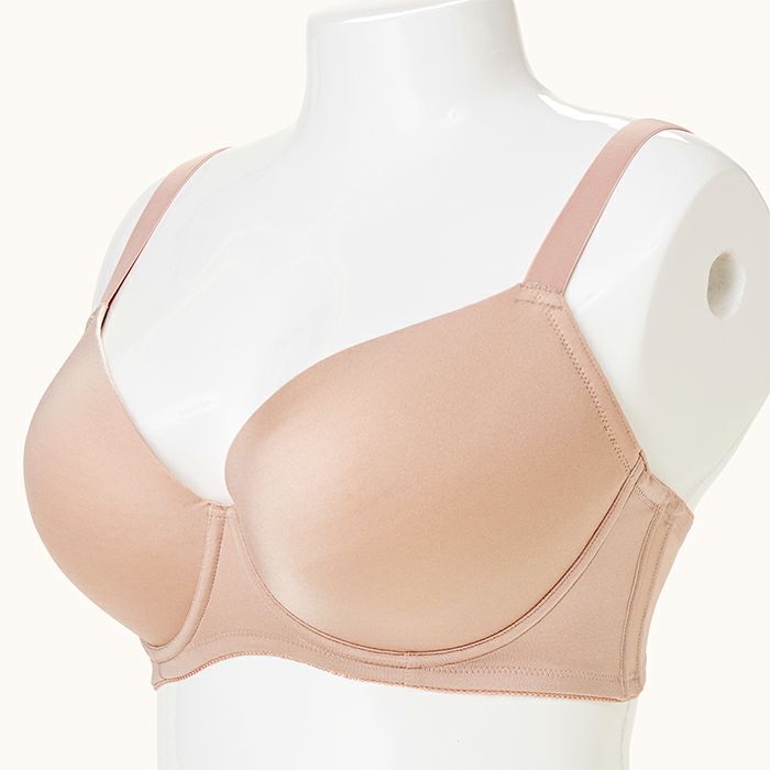 アウターに響きにくいシームレスタイプ&バストをからだに密着させ小さく見せる「モールドブラ丸胸タイプ」