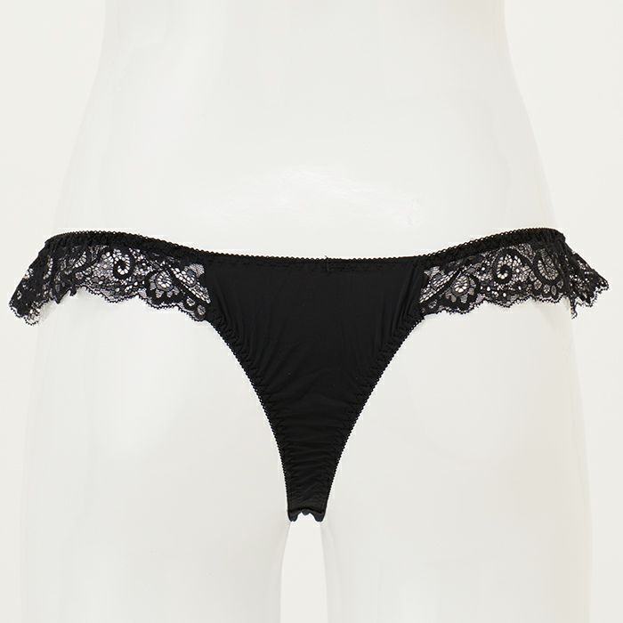 バストの存在感を目立たせず、自然な丸みを表現する 「丸胸タイプ」のブラとお揃いのTバック。