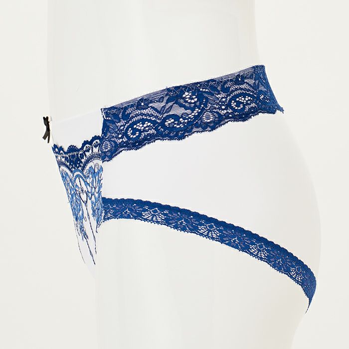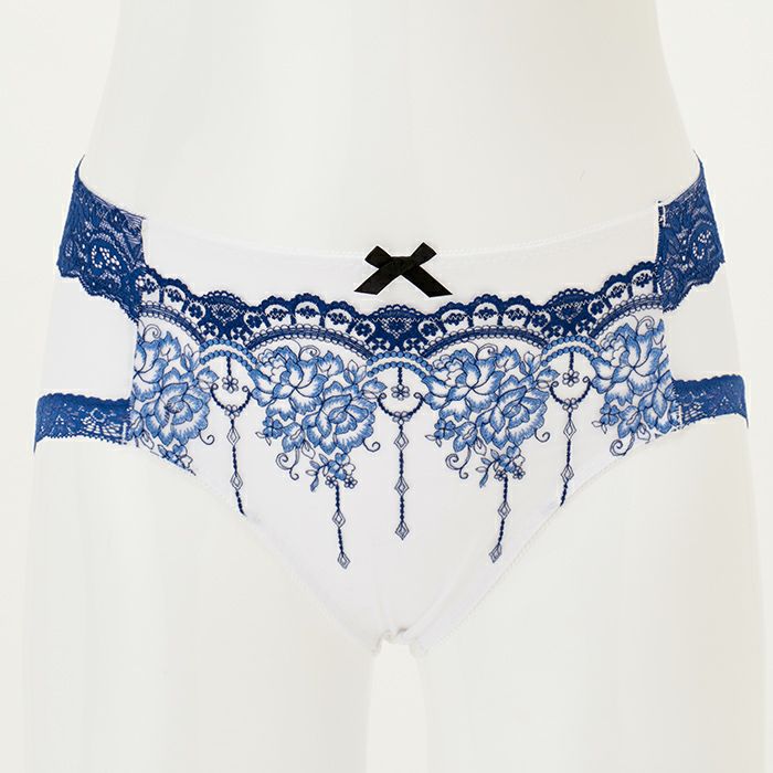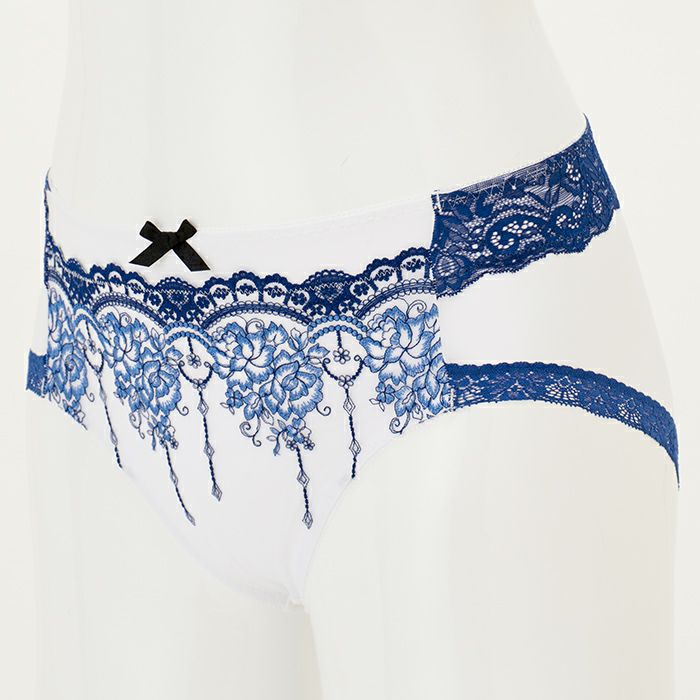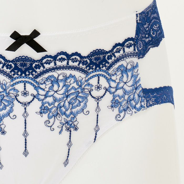 ブルーとホワイトのコントラストが陶器のように美しいランジェリー。