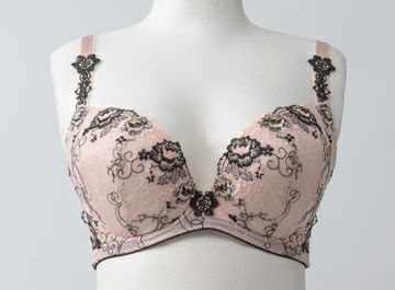 大きな胸の谷間をより美しく魅せる、前中心の低い谷間タイプのブラ。