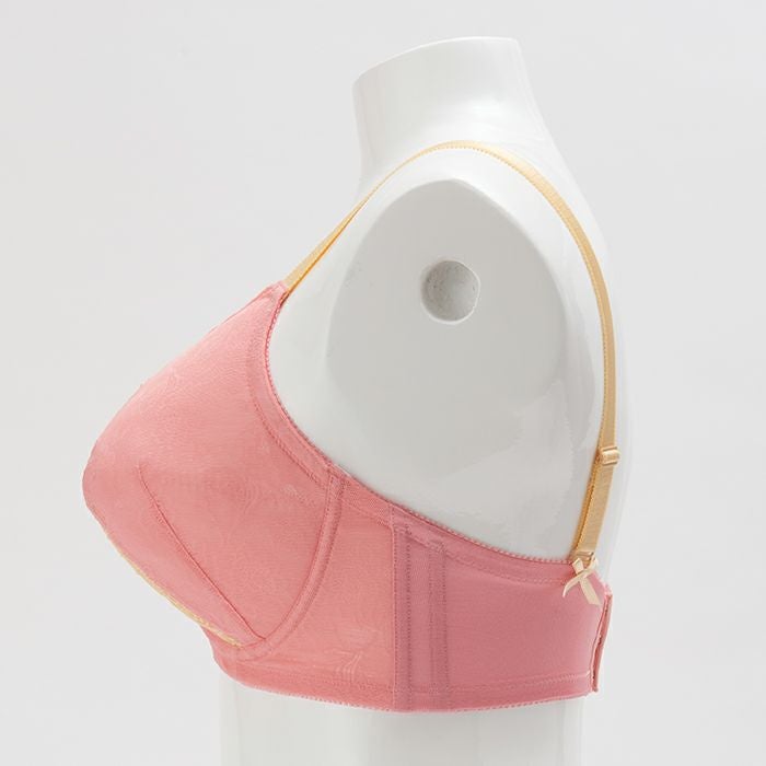 カップとアンダーに使用したジャカードレースは、上品な透け感のある花模様が施されています。