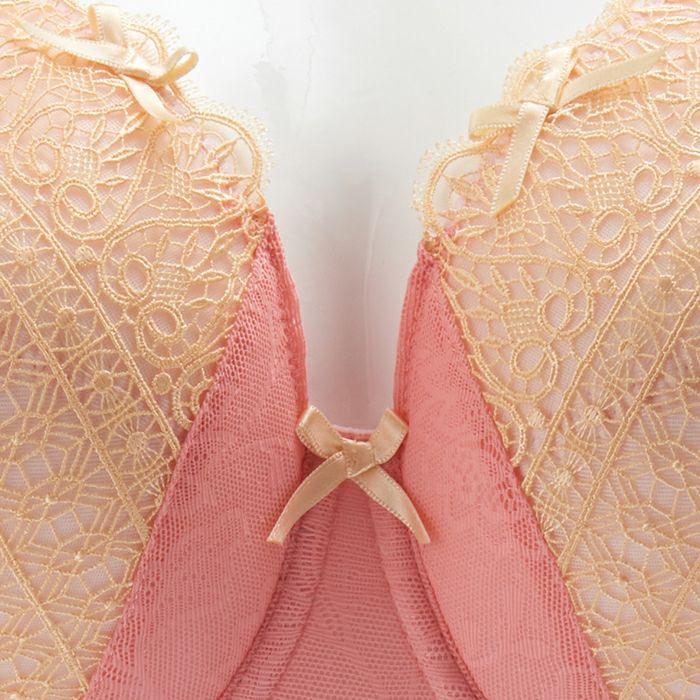 いちごミルクのようなピンクと、クリームイエローを組み合わせた、スイーツみたいに甘い印象のランジェリー。