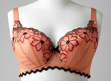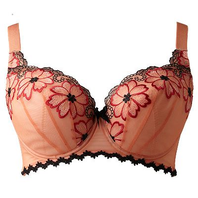 全体をオレンジで統一し暑い夏にも負けない鮮やかに輝くブラ! 大きな赤のエンブ刺繍の花が品のある大人の女性にも、元気で活発な女性にも演出してくれます。