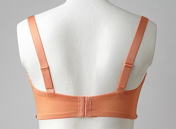 下カップ裏に取り外しパットが付いてパッドポケットがついています。今までの商品と比較しカップ素材の伸びは無いですが、しっかりグラマーサイズの胸をサポートします。左右の大きさの違う方、デコルテにボリュームを出したい時など、シーンによってご自身でパットを活用下さい。