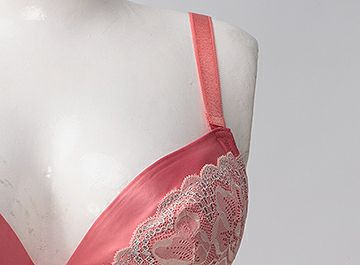 サーモンピンク×レースのコントラストは気品があり優雅なブラジャーに仕上がっています。