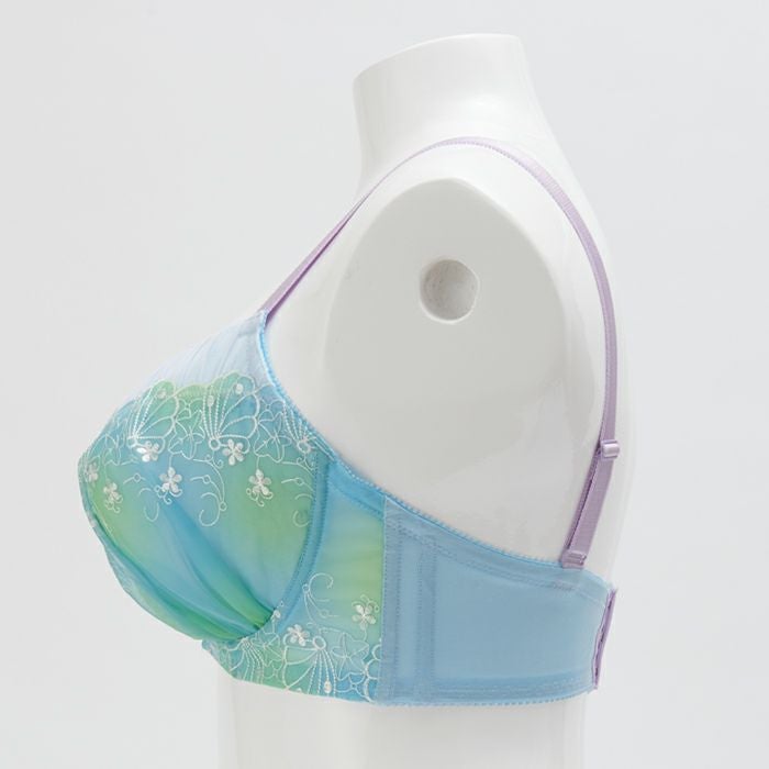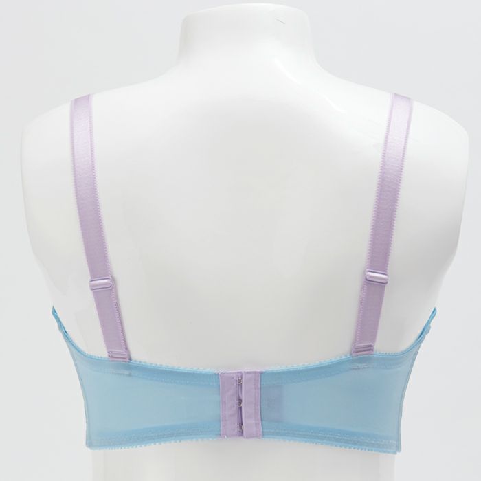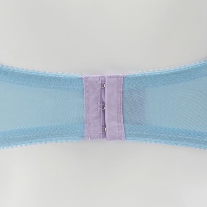 カップ上辺は清楚な印象のホワイトのソフトチュールをあしらい、ギャザーが海のさざ波を表現します。