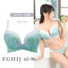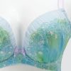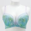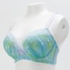 人魚をイメージした幻想的なデザイン 大きな胸の谷間をより美しく魅せる、前中心の低い谷間タイプのランジェリー。 人魚姫をイメージした涼しげで幻想的なデザインのランジェリー。 爽やかな水色×グリーンのオーガンジープリントに、シェル柄の刺繍を施しました。 カップ上辺は清楚な印象のホワイトのソフトチュールをあしらい、ギャザーが海のさざ波を表現します。 前中心のサテンリボンと、ストラップ、バックのフックアイは、差し色にラベンダーを使い、細部までこだわりました。 ※プリント柄は、商品によって柄の見え方が違う場合がございますため、ご了承ください。
