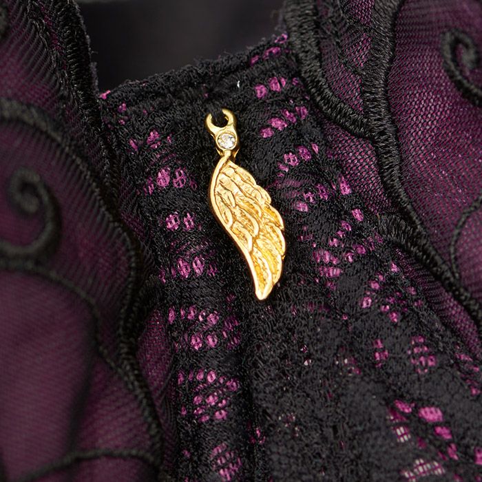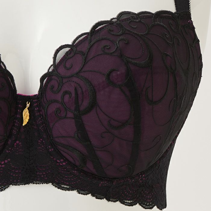 マルベリーカラーのベースにブラックのレースをあしらったセクシーなランジェリー。