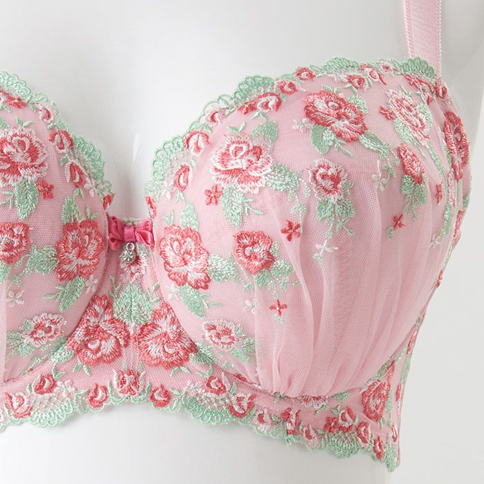カップと前身には、ベリーのような色づかいが可愛い花柄のエンブレースを重ねました。