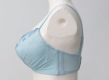 下カップ裏に取り外しパットが付いてパッドポケットがついています。今までの商品と比較しカップ素材の伸びは無いですが、しっかりグラマーサイズの胸をサポートします。左右の大きさの違う方、デコルテにボリュームを出したい時など、シーンによってご自身でパットを活用下さい。