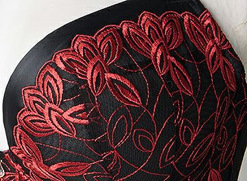 全体を黒で統一し、カップとアンダーは赤の刺繍レースを施しました。