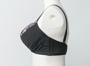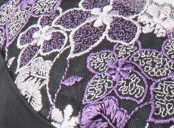 ブラックをベースに、風に揺れる紫の花の刺繍レースが映えるセクシーなデザイン。