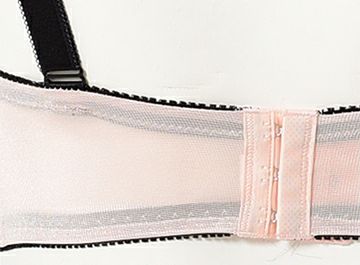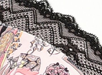 カップ上辺とアンダーのサイド部分には、幾何柄がスタイリッシュなブラックのストレッチレースを使用。