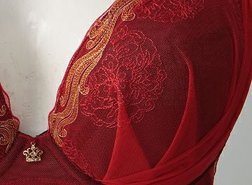 カップ内側を黒にした事により刺繍の赤花や前身上辺のゴージャスな金糸がさらに際立ち、大人なブラに仕上がりました。