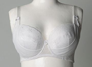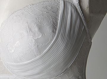 純白のストレッチレースとプリーツが洗練されたブラとしてとても上品でエレガントな仕上がりです。