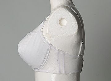全体を白で統一し、カップと前身には花柄の柔らかいストレッチレースを使用。