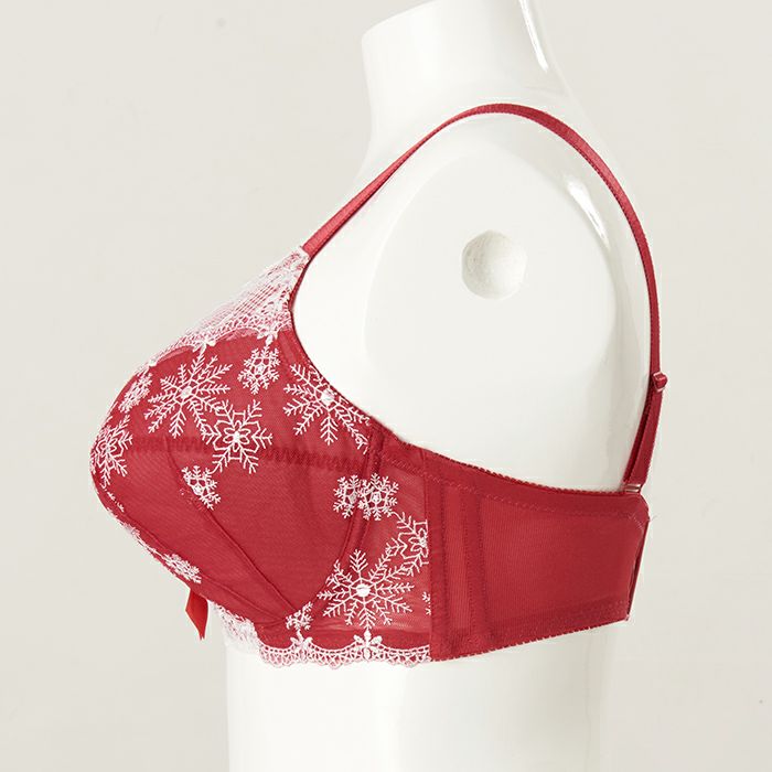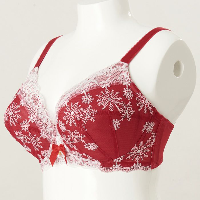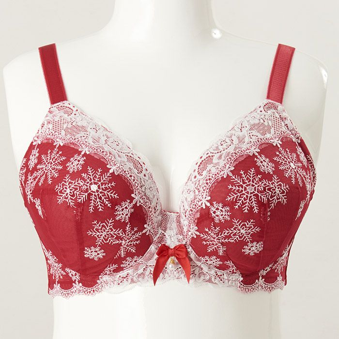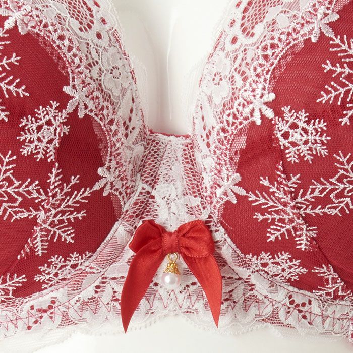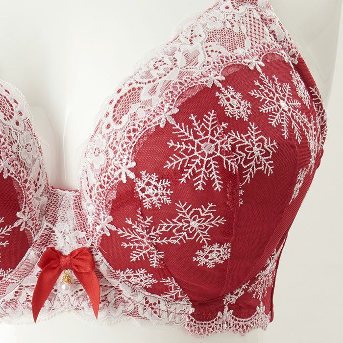 カップと前身のサイドには雪の結晶の刺繍レースを重ねた、冬のシーズンにぴったりなデザイン。