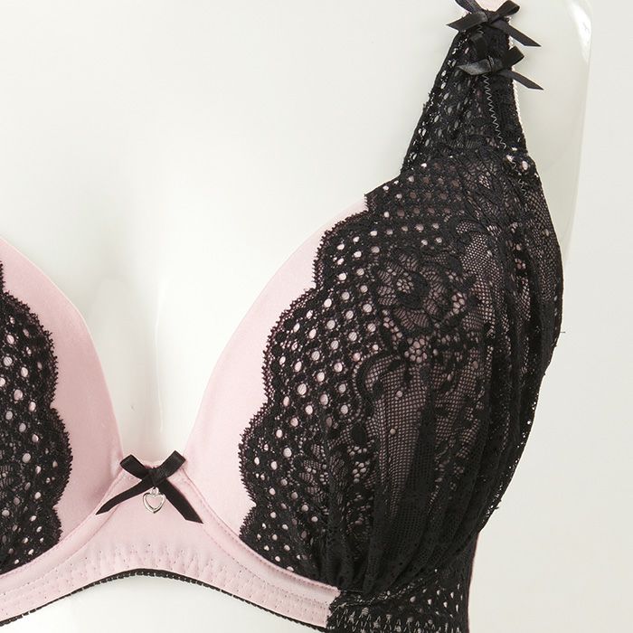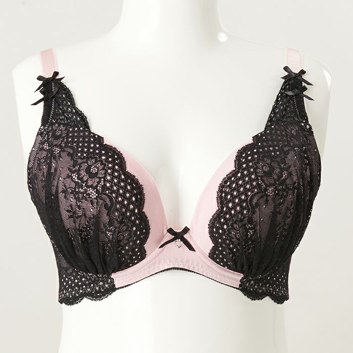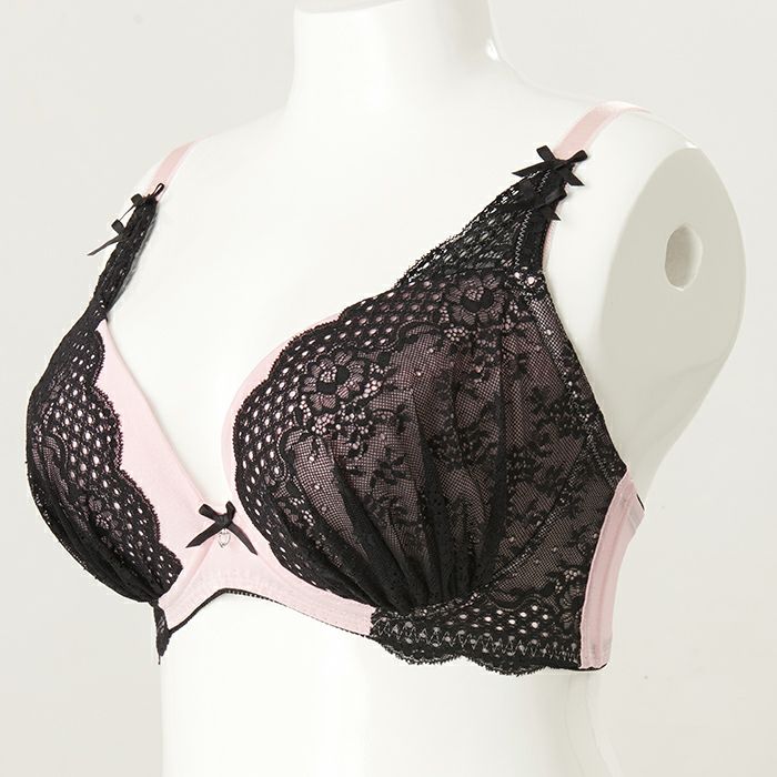 大きな胸の谷間をより美しく魅せる、前中心の低い谷間タイプのブラ。