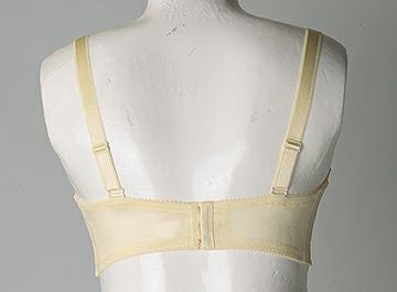 下カップ裏に取り外しパットが付いてパッドポケットがついています。今までの商品と比較しカップ素材の伸びは無いですが、しっかりグラマーサイズの胸をサポートします。左右の大きさの違う方、デコルテにボリュームを出したい時など、シーンによってご自身でパットを活用下さい。