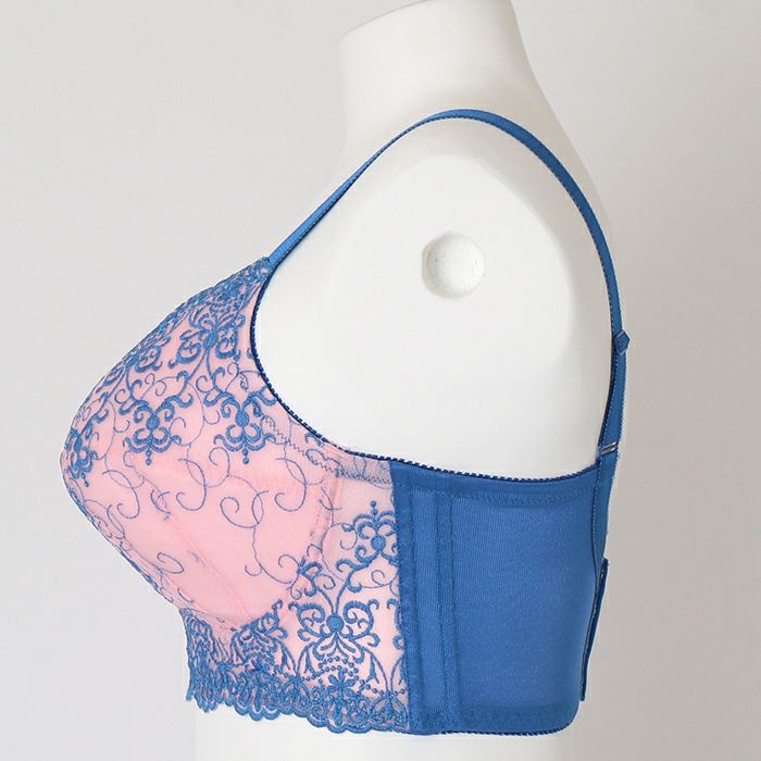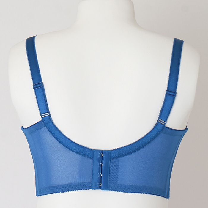 バストの重みをしっかり支え、脇肉もスッキリさせるセミロング丈&脇高タイプ。 バックスタイルはU字型で背中の食い込みを軽減し、3列4段ホックで安定感抜群です。