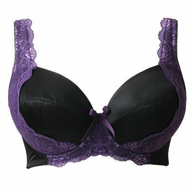 黒と紫のコントラストが今までにない大人の雰囲気を漂わす、魅力が詰まったフルカップ。 カップからストラップに繋がる紫のレースは光沢のあるレースをふんだんに使用。角度によってカップの表情も変わります。リボンもいつもとは違うグログランリボンを使用。 カップはシックに黒のみで見た目もスマートな仕上がりになっています。