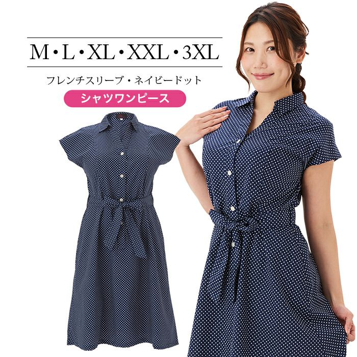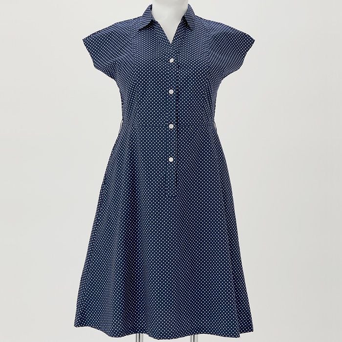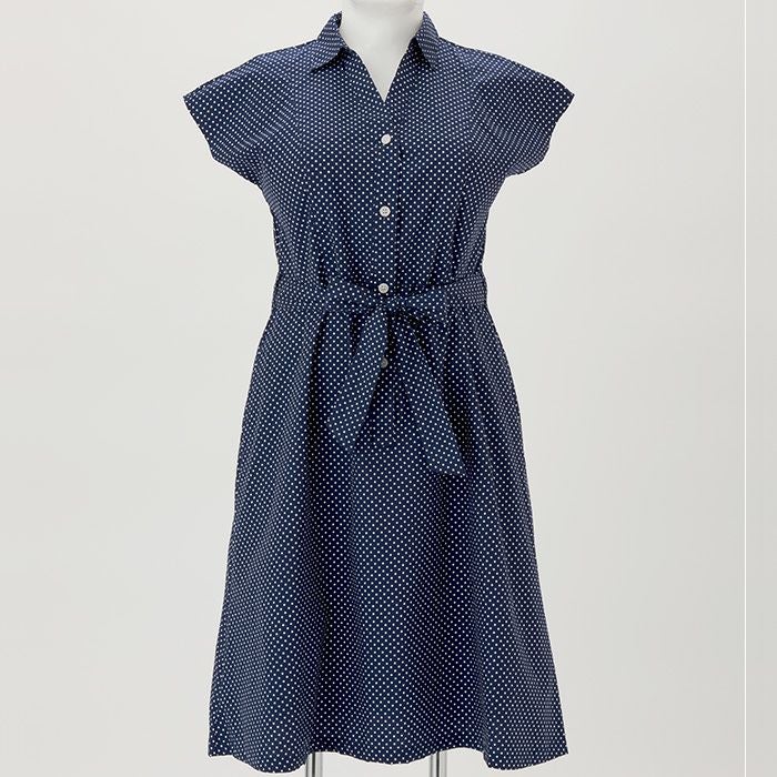シャツワンピース フレンチスリーブ・ネイビードット(SP-515)