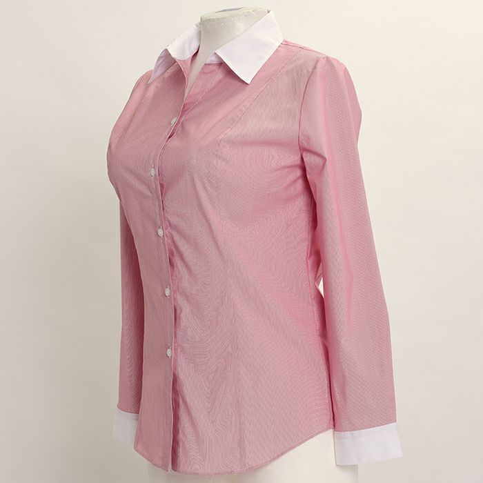 カジュアルライクに着こなせるガーリーな赤シャツです。