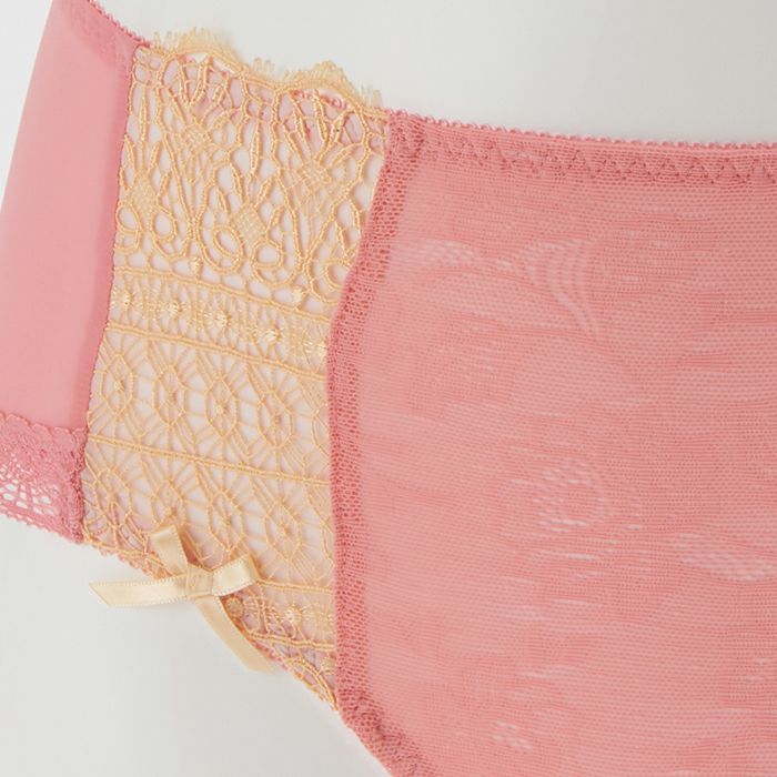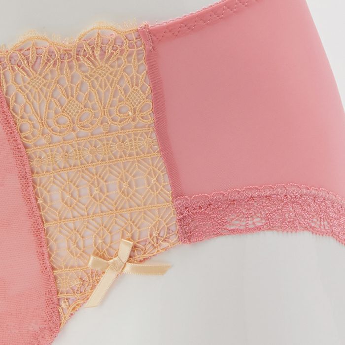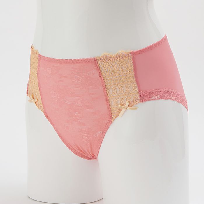 いちごミルクのようなピンクと、クリームイエローを組み合わせた、スイーツみたいに甘い印象のランジェリー。