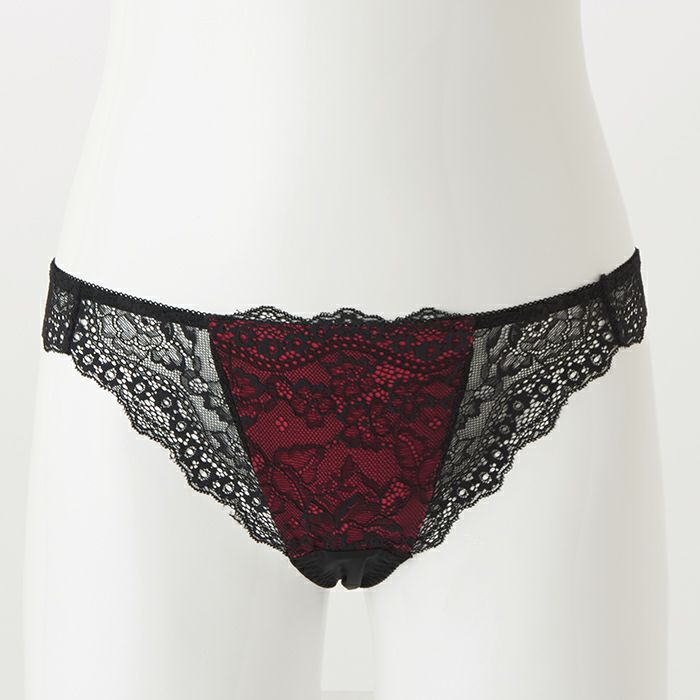 ワインレッドとブラックの組み合わせがセクシーな印象のランジェリー。