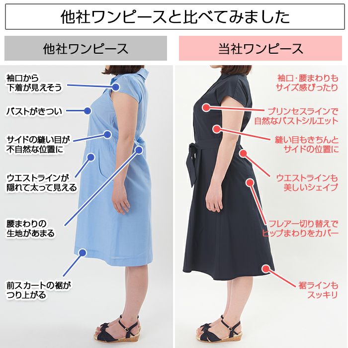 既製品でこんなにきれいに着られたことがなかったので感動しました。バストに合わせてサイズを選ぶとどうしてもウエストがあまり気味ですがベルトリボンで調整してます。 ぜひカラーや素材などバリエーションを増やして販売してほしいです。