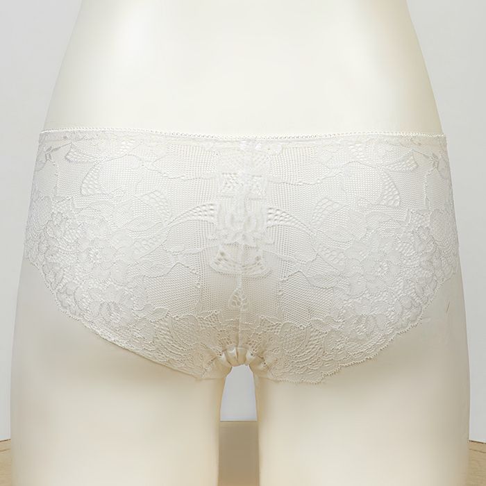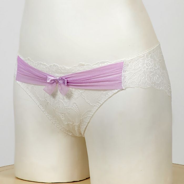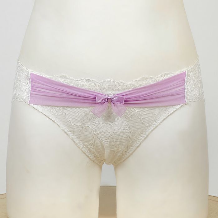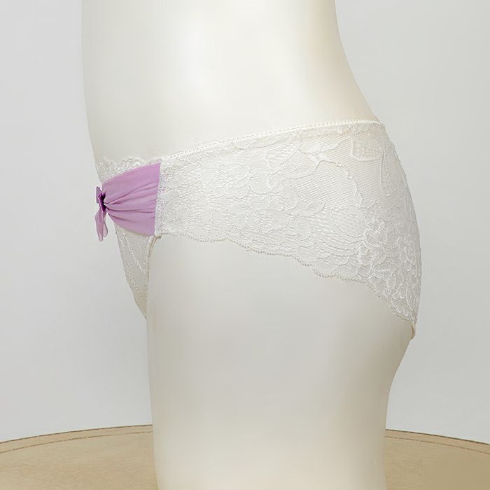 大きな胸の谷間をより美しく魅せる、前中心の低い谷間タイプのブラとお揃いのショーツ。 ホワイトの清楚なデザインに、オーキッドカラーが上品に映えるランジェリー。 花のブーケ柄ストレッチレースの甘い雰囲気に、レース1枚のバックスタイルでセクシーな透け感もプラス。 ウエストにギャザーチュールを重ね、サテン×チュールのリボンをポイントに飾りました。