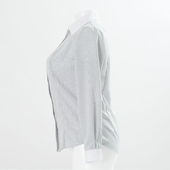 ●衿もとは綺麗なVラインになったスキッパータイプ