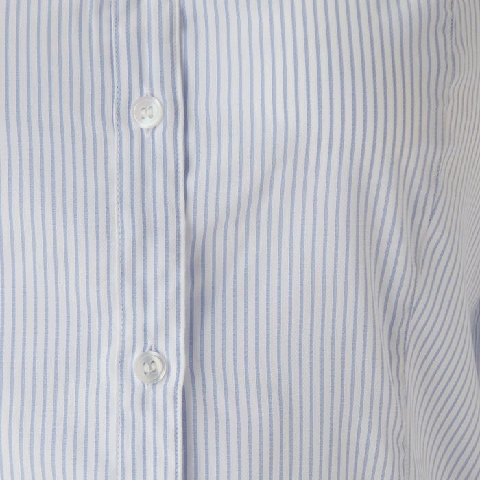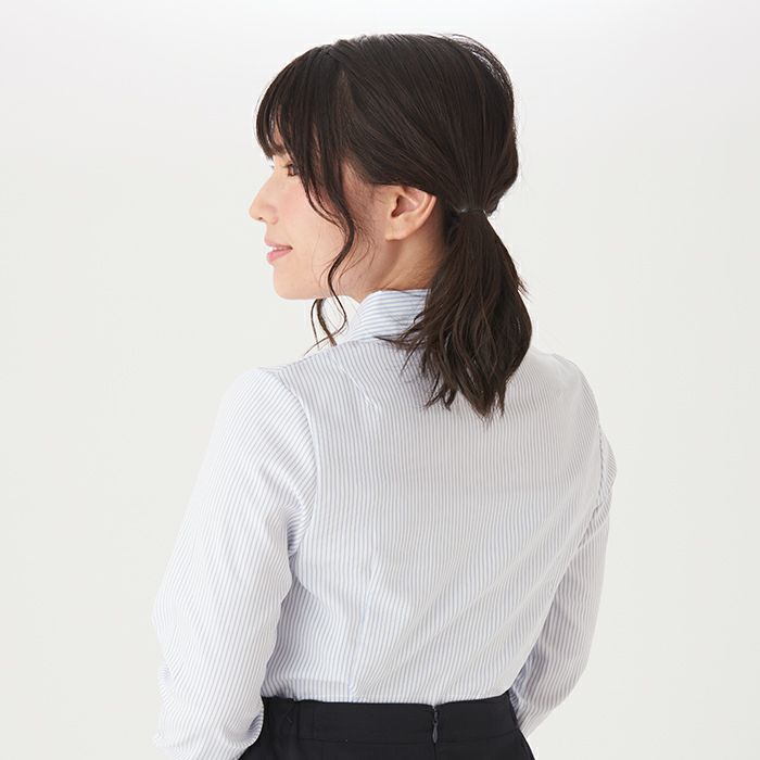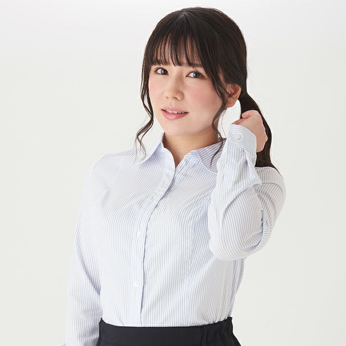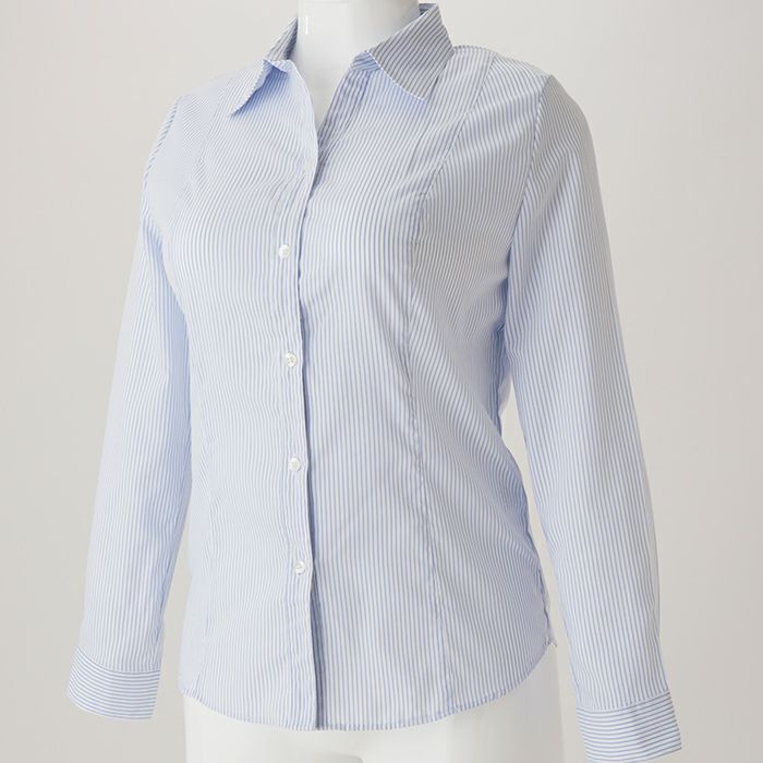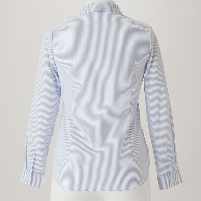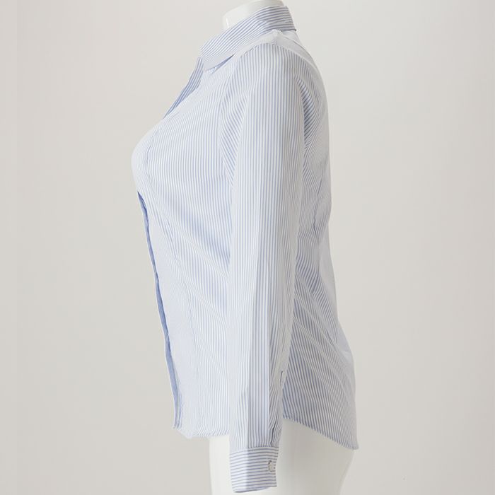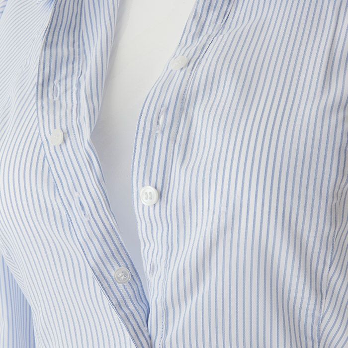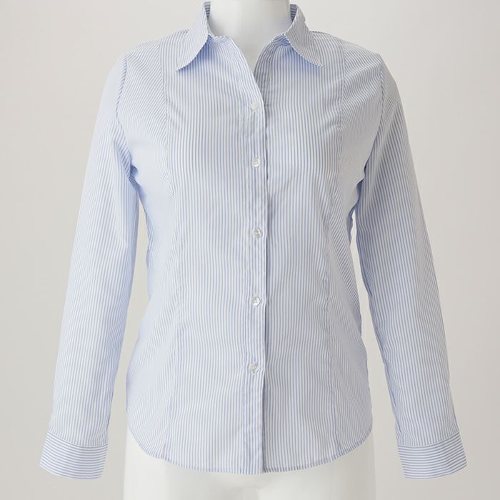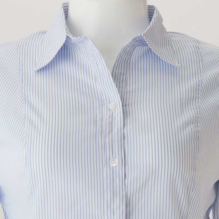 清潔な白地に、きちっと感のあるブルーのストライプ柄。