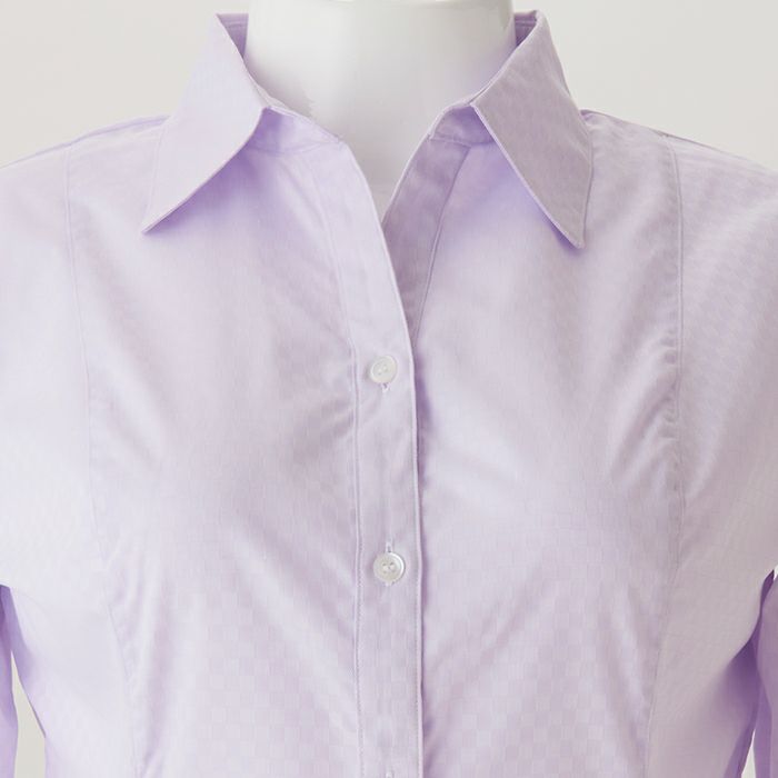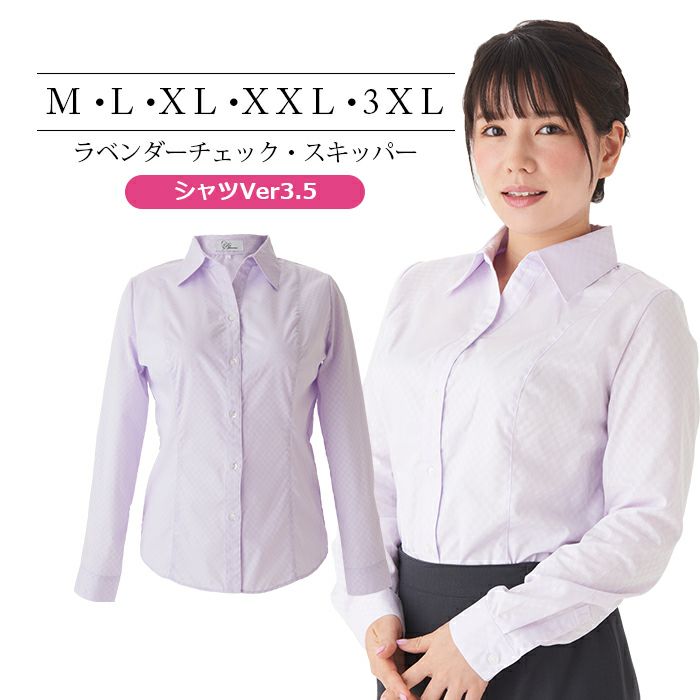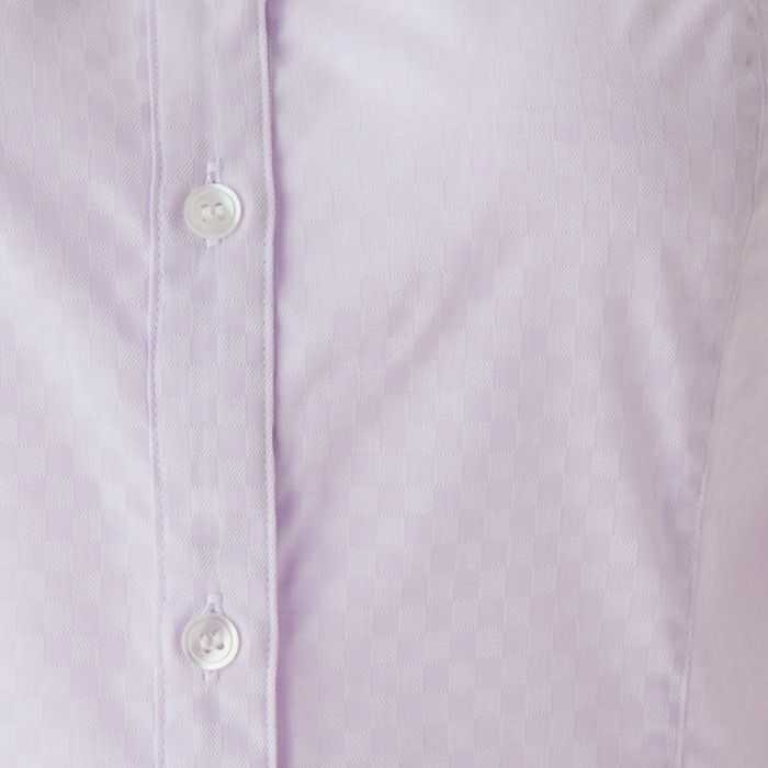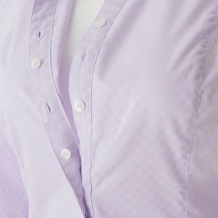 グラマーサイズのお悩みを全て解消 グラマーサイズのための立体構造シャツのVer3.5! ルイ・グラマラスのシャツの特徴は 1.細分化したサイズ構成 2.美しいシルエットと着やすさ 3.グラマーサイズだからこそ、インナーが見えない様に、隠しボタン使用。 フェミニンンな印象のラベンダーカラーに、かちっとしたチェック柄を合わせました。 ドビー織のチェックはカジュアルになりすぎず着こなせます。 ・洗濯しても型崩れやしわが少なく面倒なアイロン掛けが不要の形態安定シャツ ・衿もとは綺麗なVラインになったスキッパータイプ ※モニター環境によって、写真と実物との誤差が生じます。予めご了承ください。