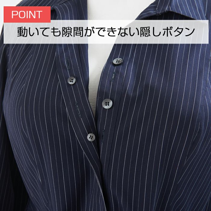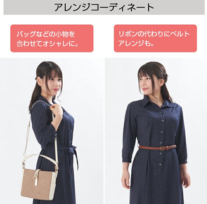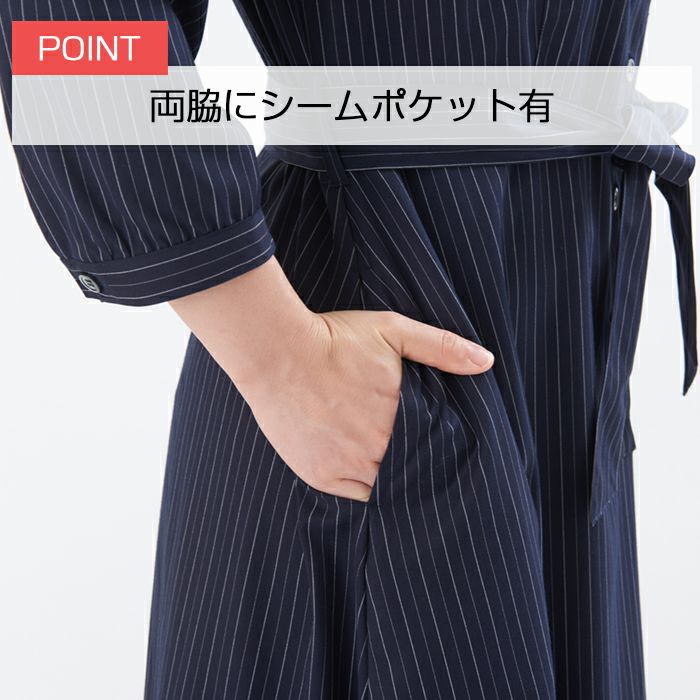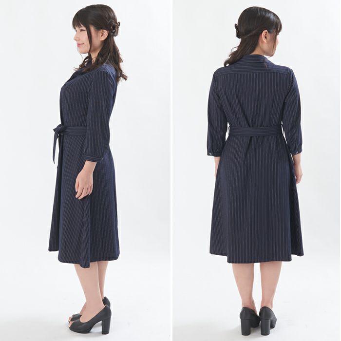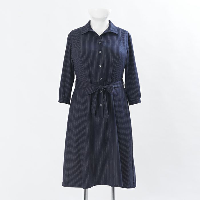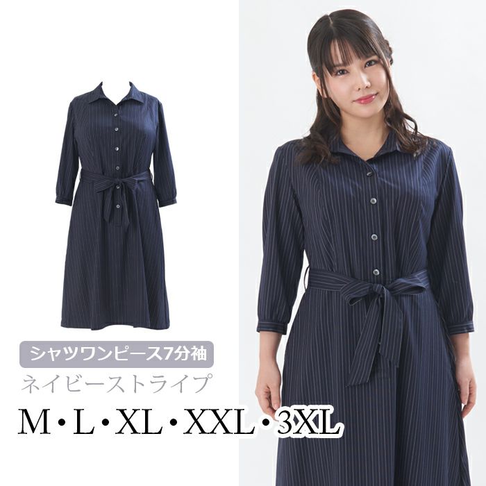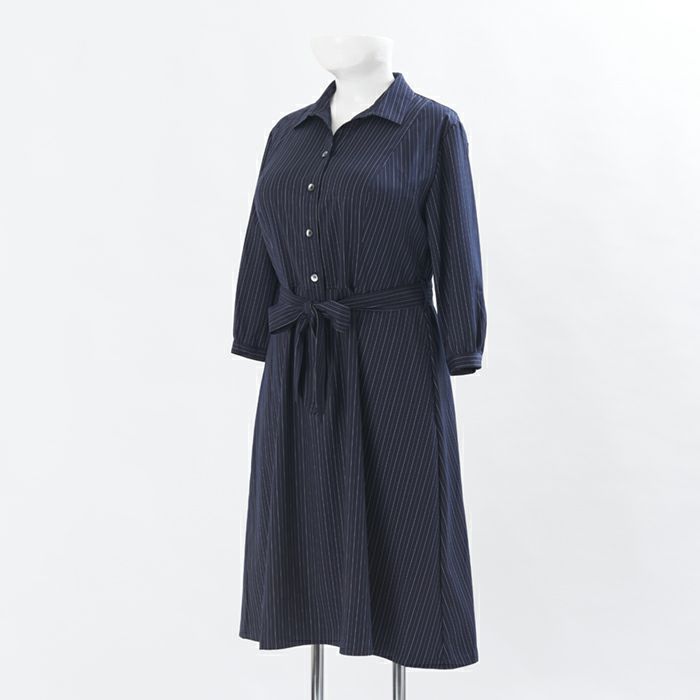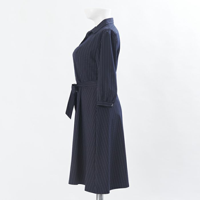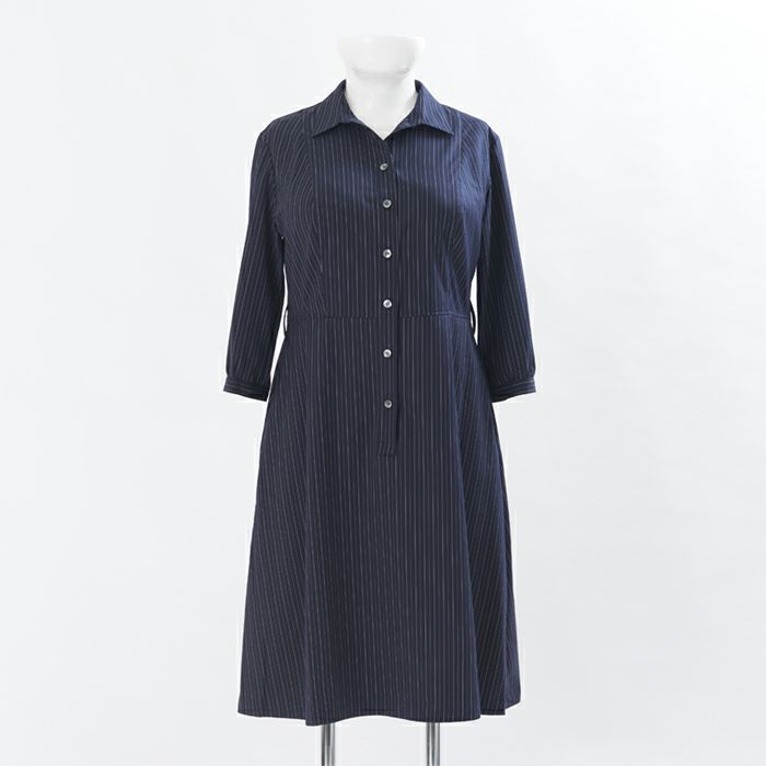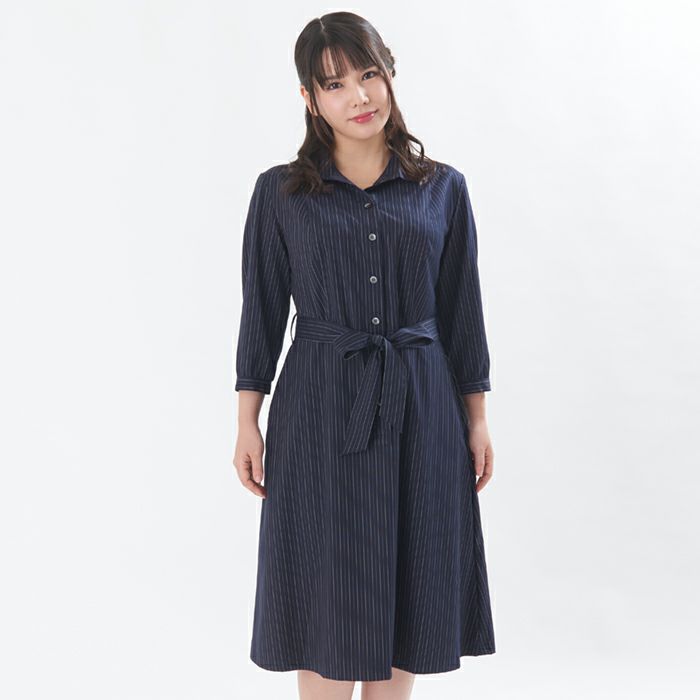 【SALE】シャツワンピース7分袖 ネイビーストライプ(SP-385)