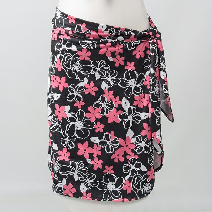 【SALE】ハワイアンフラワープリントパレオ 黒(SP-168)