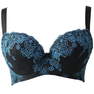 黒ベースに青の刺繍が映えて、素敵なデザインです。形もあたしの場合は、綺麗に出ました。H80かI80を購入しています。アンダー80で安くて可愛いデザインのものが、世の中的になかなか無いので、凄く助かります。