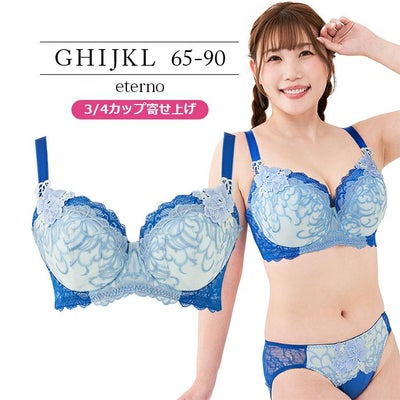 Lカップを初めて購入しました。 今まではj〜Kカップを着用してましたが、胸のホールド感が強く、3/4カップですが、胸をおさめる感じがあり、キレイに見せてくれる感じが良かったです。 青の色味も、鮮やかな感じと、刺繍がシンプルで落ち着いた感じがあり、すごく良かったです。 Lカップはさすがに大きすぎるかなと思いましたが、恥ずかしがらず購入して良かったです。