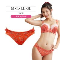 モニターのマネキンが着ている朱色の方よりも、モデルさんが着ているオレンジの方が実物に近いです。 ペイズリー柄の下着ってあまりないので、個性的だし他と差をつけられる感じが素敵です。 ただ、色がかなり濃いオレンジなので、ブラと同じように白いレースがあしらわれていた方が派手さが抑えられる上に女性らしさも出てよかったと思います。 サイドのリボンは、ペイズリー柄のシュシュやヘアゴムのようでとても可愛いです。 他社製品ではLですが、ルイグラマラスさんのショーツは伸縮性があるのでMでぴったりです。 -