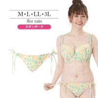 パステルカラーの花柄だけだとボヤけてしまうデザインをキュッと引き締めるラベンダー色のストレッチレース最高です!着け心地は左右の大きさが違うのでフルカップの時は必ずパットで調節しています。 -